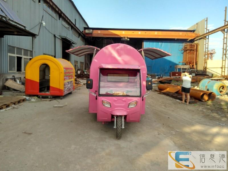 唐山海洋机械设备厂加工定制各种餐饮美食车,电动货车,门卫岗亭,售货亭,快递车,厢式货车,三轮车,三轮四轮车厢及车